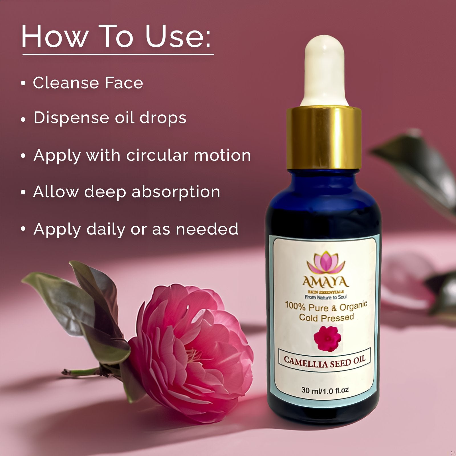 100% Pure Camellia Sinensis Seed Oil: The core of our product, this oil, cold-pressed to preserve its nutrient-rich profile, is abundant in antioxidants that combat aging and promote skin healing.