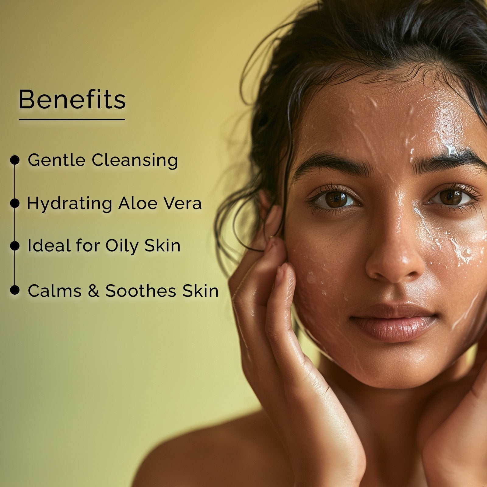 This organic elixir, intricately formulated, offers a luxurious and gentle cleansing experience, transforming your daily skincare routine into an indulgent ritual. Enriched with the calming essence of chamomile extract, the soothing touch of almond oil, and the hydrating embrace of aloe vera water, this face wash is a harmonious blend of nature's finest ingredients. Designed for the discerning, it caters especially to those with sensitive or oily skin. Revel in the delicate removal of impurities and the restoration of your skin's natural radiance, leaving it feeling fresh, clean, and resplendently luminous.