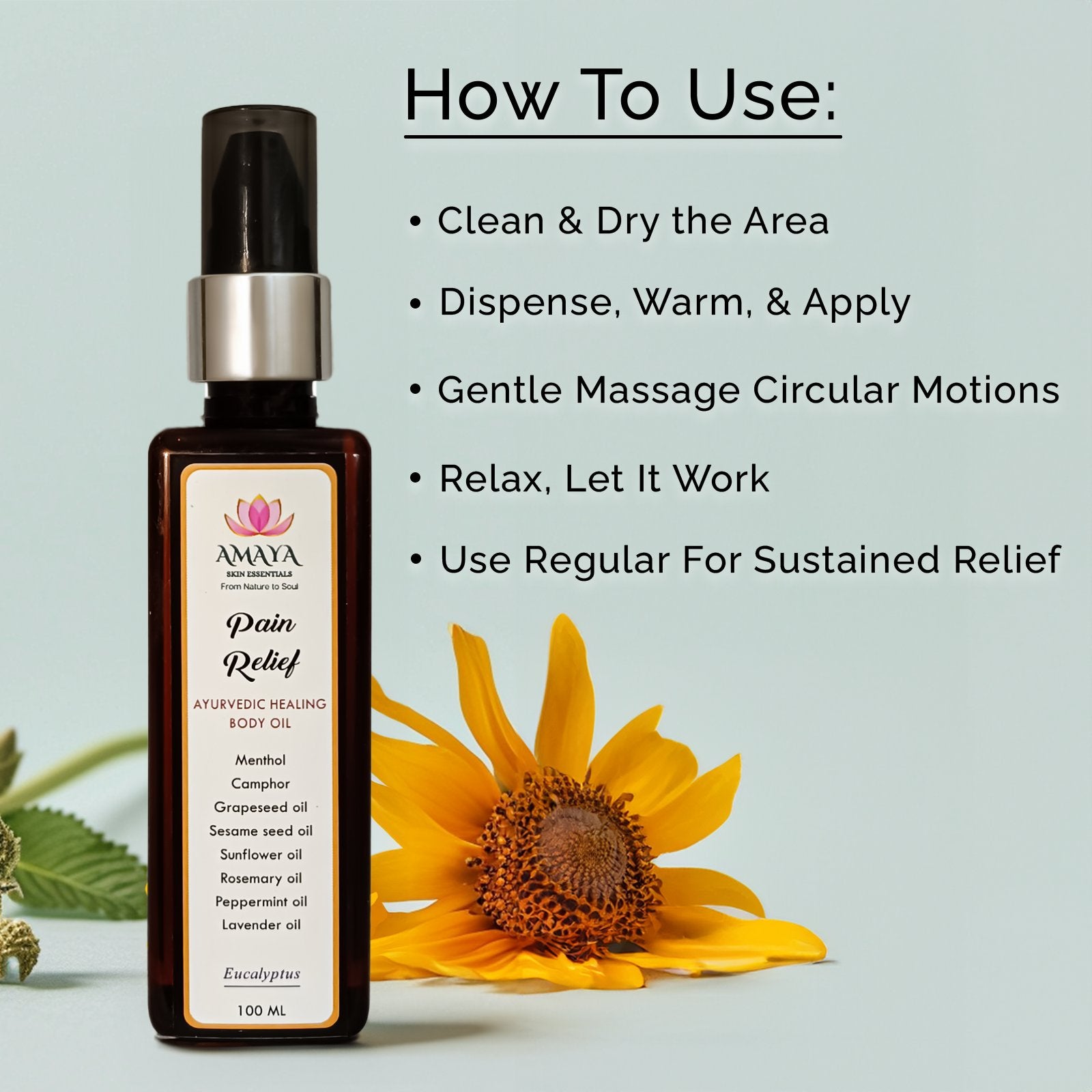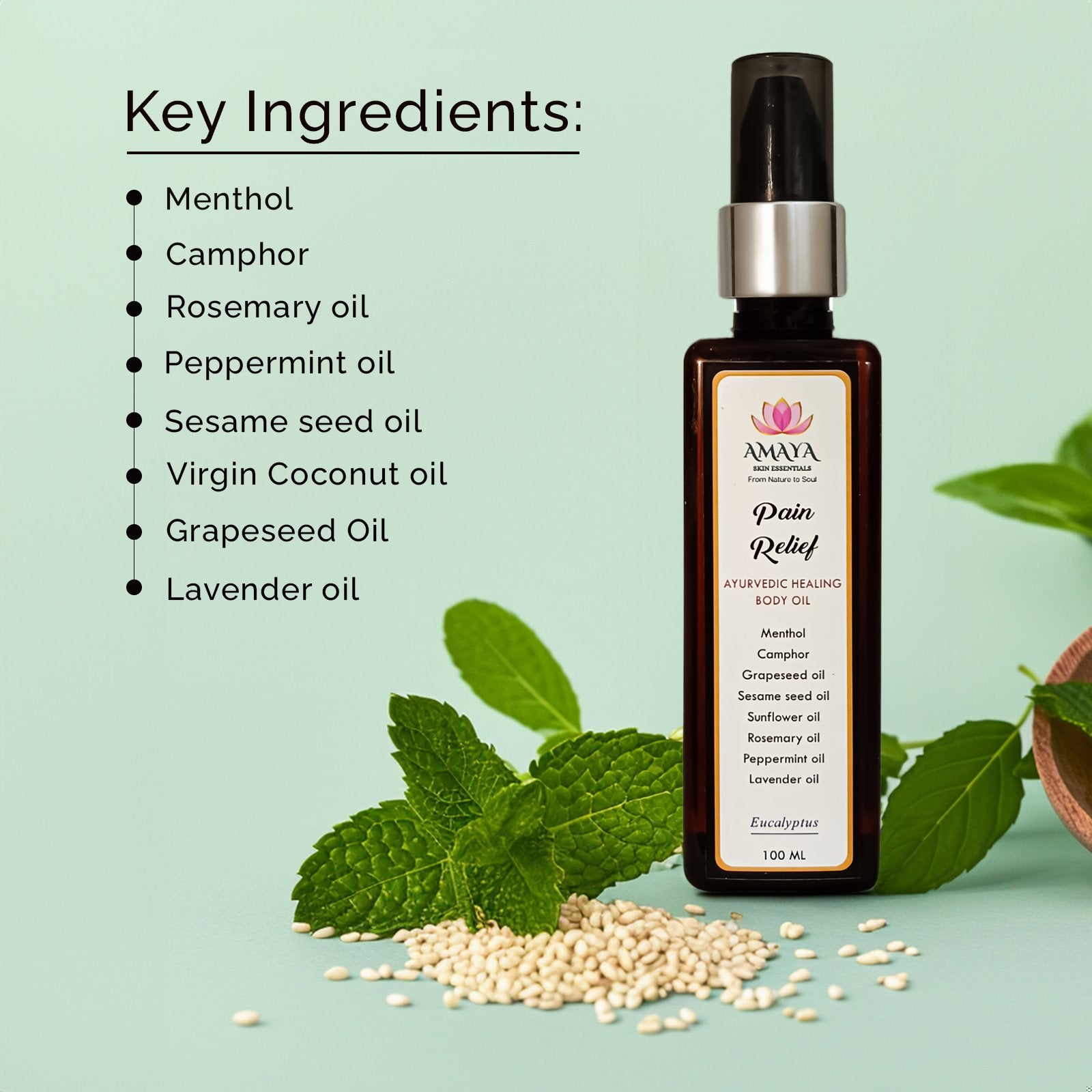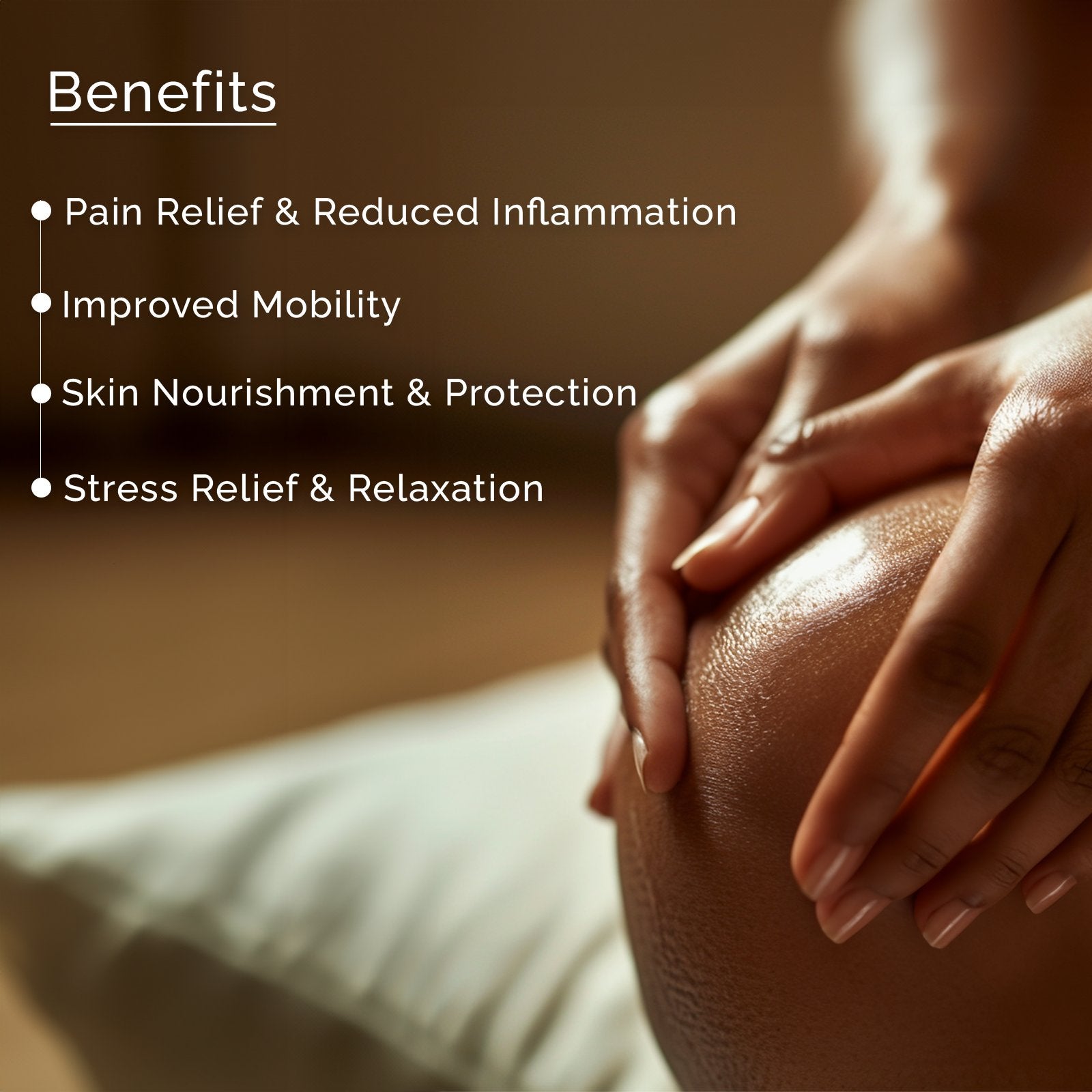 This Ayurvedic healing body oil is a harmonious blend of natural ingredients and therapeutic essences, designed to cater to a broad spectrum of pain-related issues.