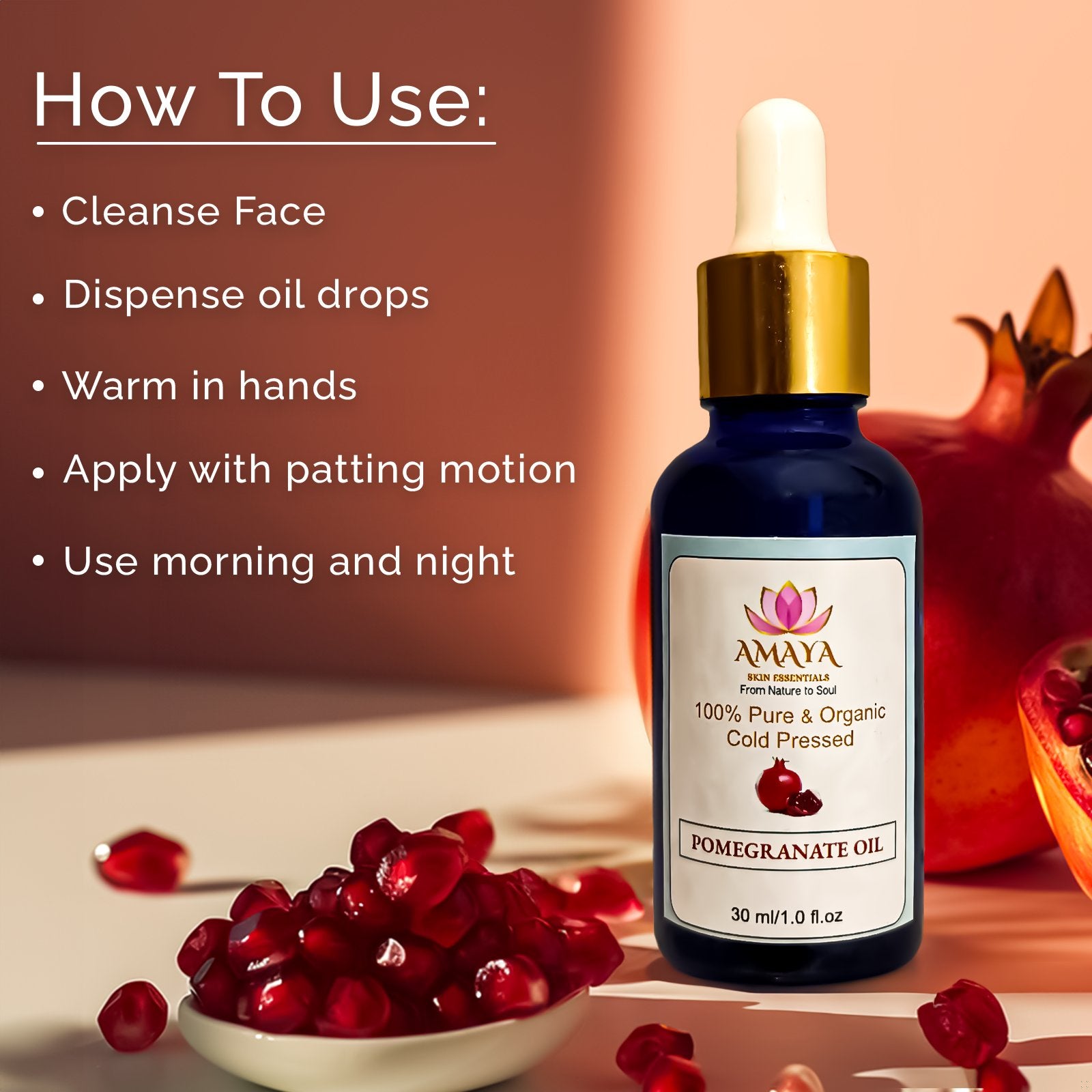 Linoleic Acid: This naturally occurring acid in pomegranate oil soothes and calms skin irritation, contributing to a balanced and even skin tone.