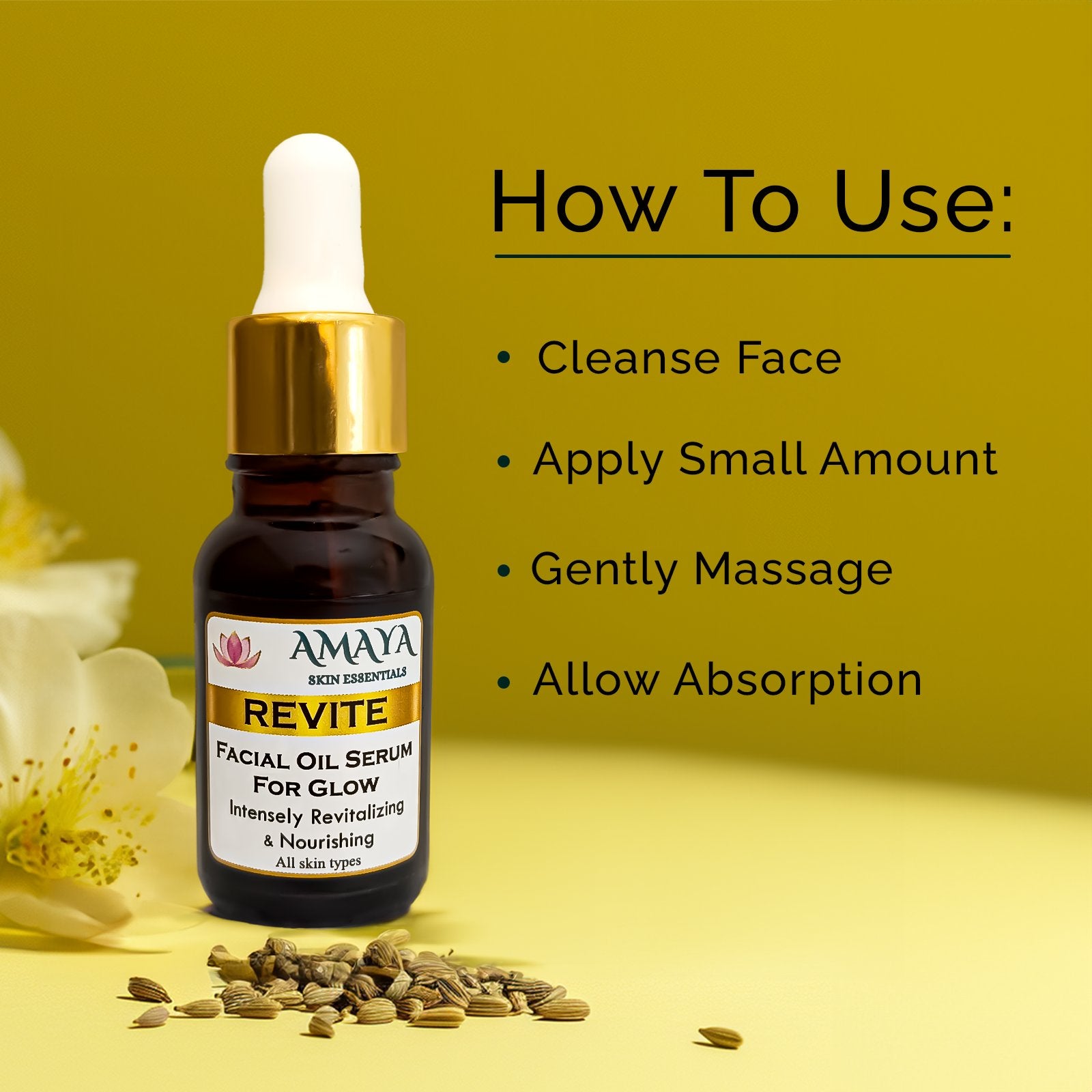 I'd never tried a facial oil before, but since I've included Amaya Revite in my daily skincare routine, my skin never felt this young and supple. It's not at all heavy on the skin and gives a natural glow to the face. Totally worth the price! Must buy.