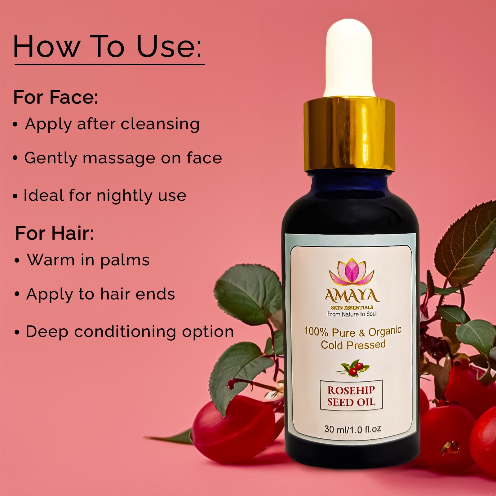 For Skin: After cleansing, apply a few drops of Pomegranate Oil onto your fingertips and gently massage into your face and neck. Its lightweight formula absorbs quickly, leaving a non-greasy, silky finish. Ideal for nightly use, it can be incorporated into your skincare routine as a rejuvenating night serum.