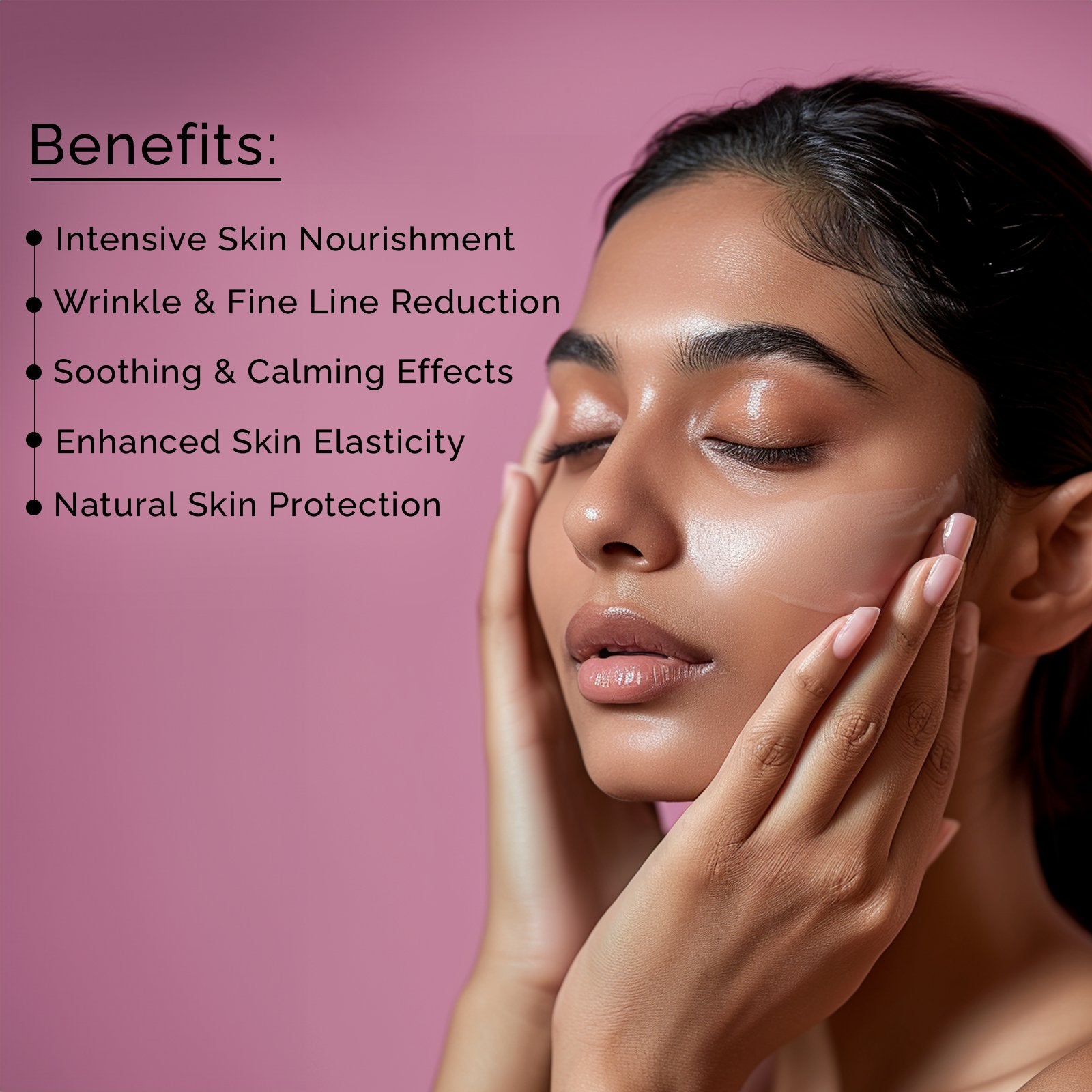 Rose Essential Oil: Infuses the cream with a soothing aroma while offering skin-calming and anti-inflammatory properties.