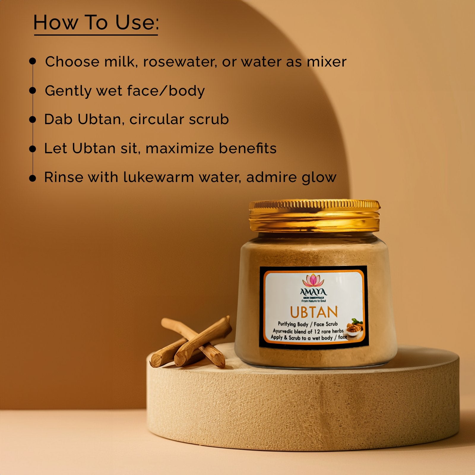 An Experience of Wellness: Using Ubtan is more than a skincare routine; it's a ritual that connects you with nature's wisdom. Its application is a moment of self-care, allowing you to unwind and treat your skin to a nourishing, natural experience.