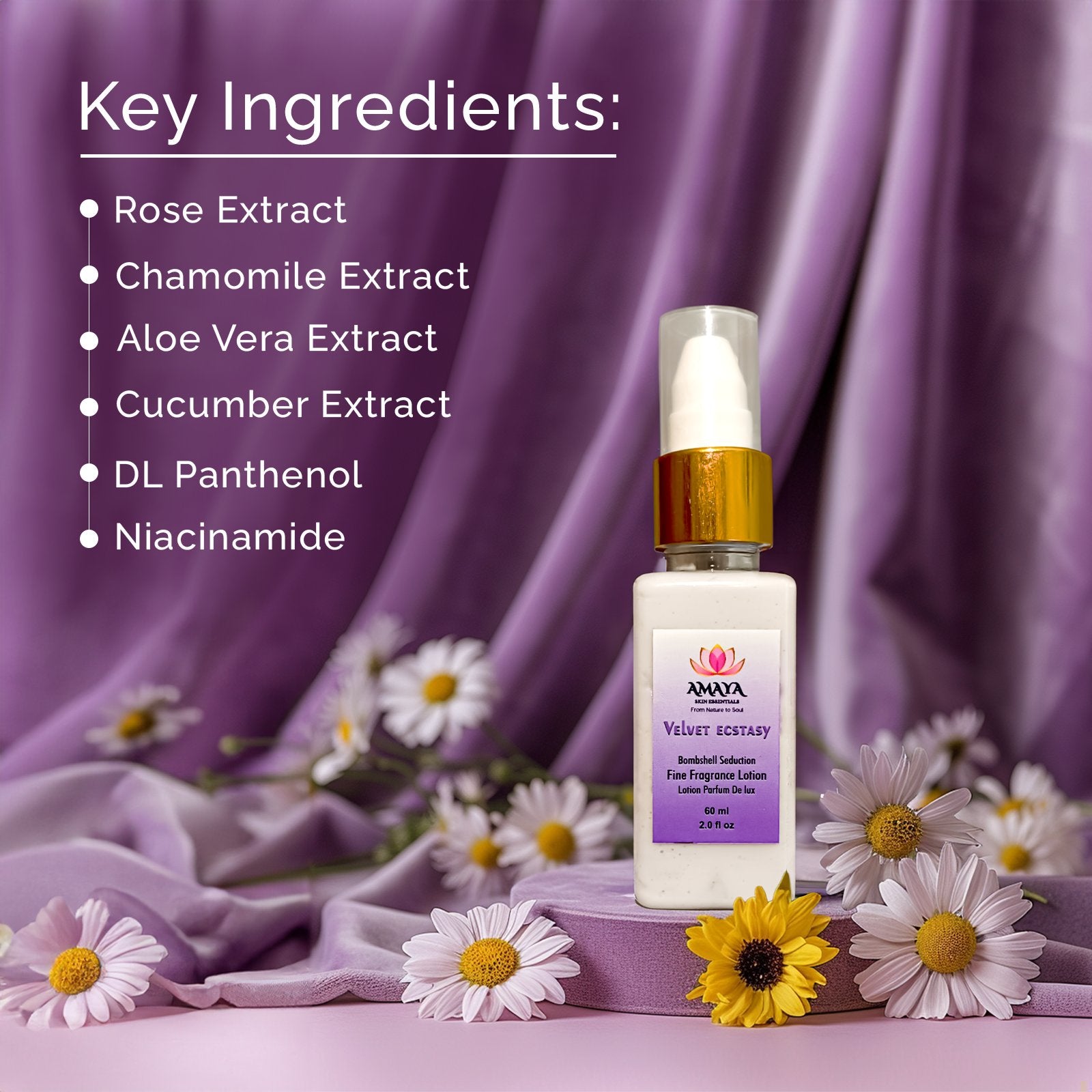 Introducing the Velvet Ecstasy Cream from Amaya Skin Essentials – an embodiment of luxury in skincare. This premium hand and body lotion is more than just a moisturiser, it's an experience that transports you to a world where nature's finesse and opulent care converge. Each application is an embrace of sumptuousness, as it's richly infused with the essence of nature's most nurturing ingredients. The Velvet Ecstasy Cream weaves a tapestry of soothing Rose extract, calming Chamomile, hydrating Aloe Vera, and refreshing Cucumber, ensuring your skin is lavished with the purest forms of nature's love. Enhanced with the rejuvenating power of DL Panthenol, the radiance-boosting benefits of Niacinamide, the intense hydration of Shea Butter, and the transformative nourishment of Argan Oil, this cream transcends mere skincare. It's a celebration of nature's generosity, tailored for the discerning. And as you bask in its luxurious touch, the enchanting Hermes Parfum envelops you, leaving behind a trail of allure and mystery. Velvet Ecstasy Cream is not just a lotion; it's a journey through the sensory delights of nature, crafted with precision and care for your skin and soul.